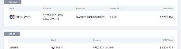 4、第四个项目是Sushi,SBF在Abracadabra存入的XSUSHI应该就是在SUSHI的存款凭证。当前,Sushi的收益率也是比较高的。