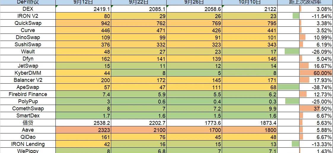 来源:Debank统计日期:2021.10.10各协议总锁仓量情况