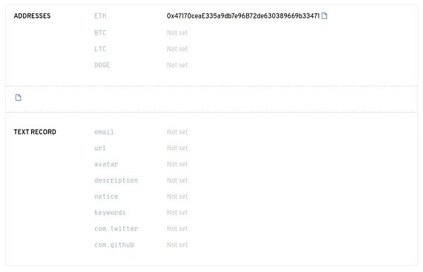 EIP-4361与以太坊名称服务(ENS)巧妙集成。如果一个地址有一个主ENS名称(也称为反向记录)集,服务可以查找这个主ENS名称并基于它解析数据。例如,可以将自己的首选用户名、头像、电子邮件地址或其他任意信息存储在ENS名称中。ENS还允许用户指定其他网络的地址,如比特币和莱特币: