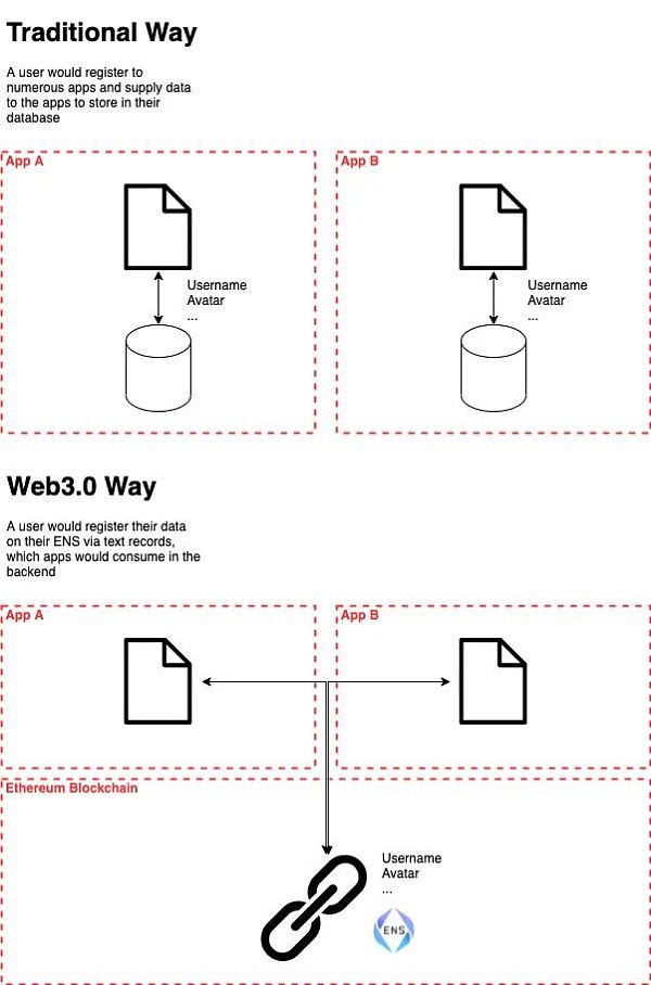 这个模型本质上是一个去中心化的、100%正常运行的、用户数据所有的“Gravatar”。数据不是由一个私有实体持有,而是发布到以太坊区块链供应用程序使用。用户将在多个应用程序中拥有一个身份,所有应用程序都通过用户的签名钱包进行身份验证。