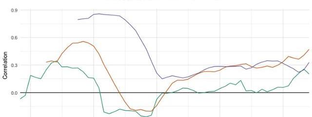 图5:不同投资期限内BTC/USD回报与CPI变化的滚动相关性与黄金类似,比特币和CPI之间的相关性在不同的投资范围内表现出随时间变化的特性。图5说明比特币与CPI在短期内具有弱/中度关系,但在长期中具有中/强正相关关系,表明比特币可以更好地用作中/长期通胀对冲。
