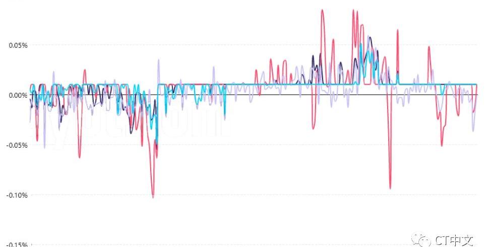 为了排除这种期权工具特有的外部因素,还应该分析一下永续期货市场。与普通月度合约不同,永续期货价格与普通现货交易的价格非常相似。这一特点使散户轻松了许多,因为他们不再需要计算期货溢价或展期交割头寸。引入资金费率是为了平衡交易的风险敞口,当多头要求更多的杠杆时,就会向他们收取资金费率。然而,当情况相反,空头的杠杆率过高时,资金费率为负值,所以他们成为支付费用的一方。