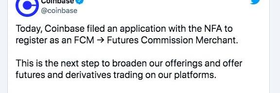 加密货币交易所Coinbase今天宣布,它已向美国国家期货协会申请成为注册期货佣金商,其目标是进一步发展加密经济。