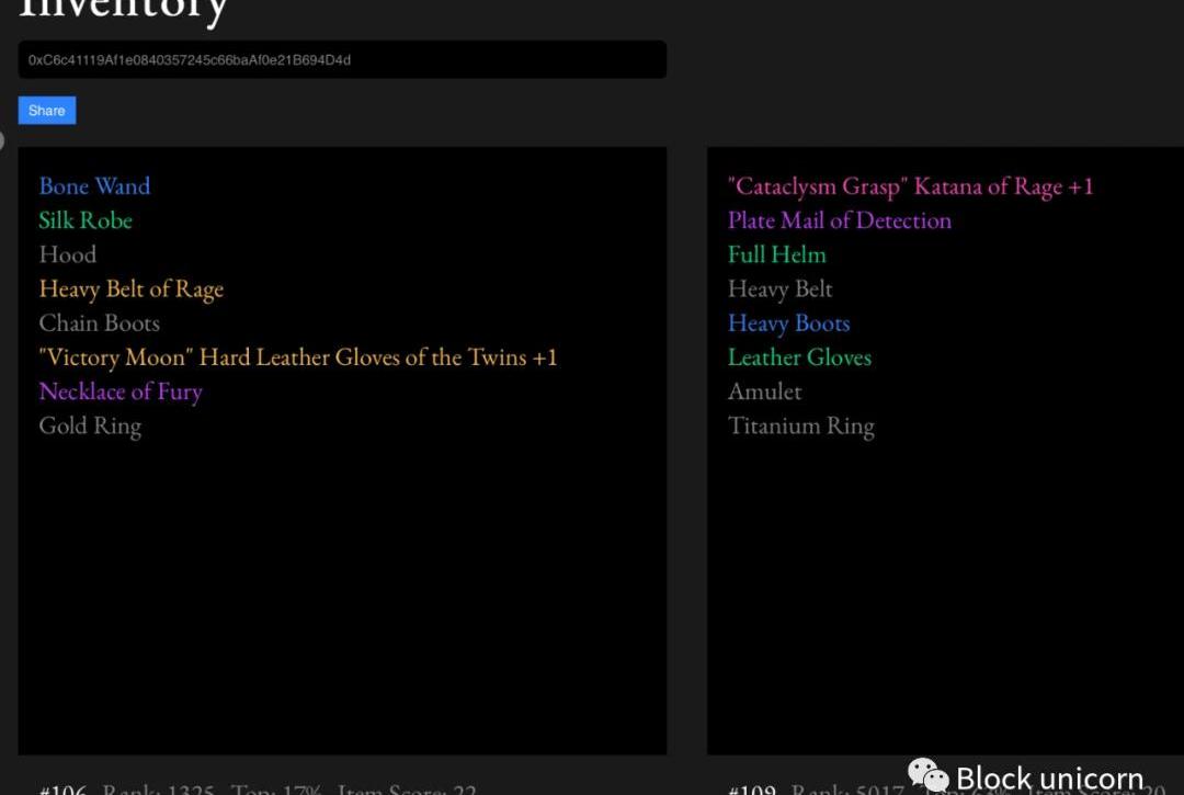 以前,NFT都是关于特定的JPEG。NFT生成艺术或NFTPFP运动的核心是购买与以太坊文化相关的特定JPEG。JPEG标准只是一个对象上的特定装饰层,它实际上并不包含关于自身的任何装饰信息。因此,当您购买战利品包时,您是否购买了一个JPEG文件,它是一个物品清单?不。OpenSea上的JPEG只是令牌的说明,而不是令牌本身。这些LootBags代币具有创建一组对象的属性,并赋予这些对象以独特的属性。OpenSea尚未更新以呈现这些对象的属性,但0xInventory.com等网站能够表达Lootbag的相关属性。