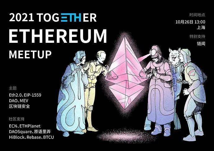 10 月 26 日,ECN 携 togETHer 的社区伙伴 (ETHPlanet/DAOSquare/ 原语里弄 /Hiblock/Rebase/BTCU) 在上海举办了以太坊社区 Meetup,现场气氛活跃,干货满满,对多个主题进行了讨论,包括 EIP-1559、以太坊 2.0、MEV、DAO、区块链安全等。ECN 特此将这些内容整理成文分享给大家,希望能增进社区对以太坊的了解和思考。
