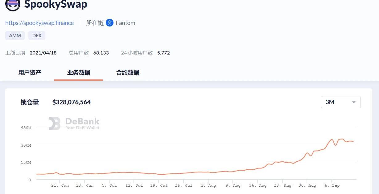 来源:Debank经过筛选,近期TVL增量较好协议有SpookySwap、SpiritSwap,短期可以关注币价表现,代币分别为BOO和SPIRIT,SpookySwap于9月2日发币,目前暂无出现较大涨幅,币价值得关注。去中心化交易所情况