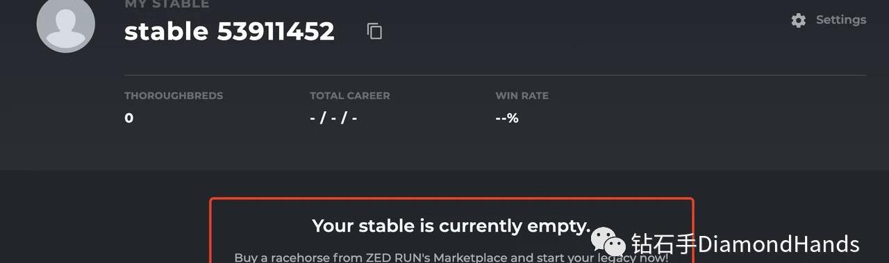 每个玩家注册游戏后,都将拥有一个马厩,马厩一开始空空如也,你首要任务就是去买马。要想参与游戏,买马就是你第一件要做的事,这里说的「买马」不是为马下注,而是拥有一匹马。