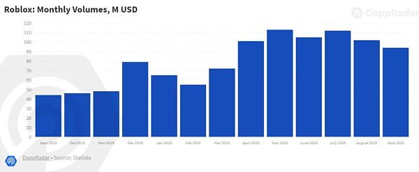 用于提高游戏体验的游戏内物品产生了400亿美元,占传统游戏行业全球收入的25%。流行的游戏,如《堡垒之夜》、《DOTA》、《使命召唤》和Roblox已经为这些装饰性道具找到了真正的市场。例如,80%的《堡垒之夜》玩家在某种程度上使用了装饰品,而Roblox的4200万日活跃玩家平均每个月花费5.6美元。