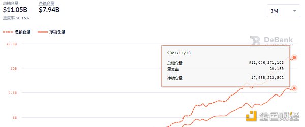 DeFi项目锁定资产前十排名及锁仓量,数据来源:Debank