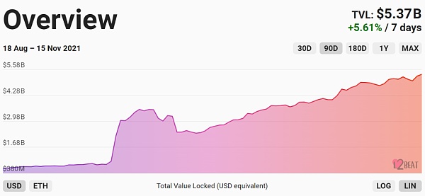 基于Optimistic?Rollup扩容方案的Arbitrum,成为了当前L2的龙头,截止11月17日,TVL高达27.8亿美元,占到了整个L2生态的的51.6%。同时也已集成了Sushiswap、Aave等诸多L1上的明星项目。同为Optimistic Rollup扩容方案的Optimism Ethereum(OE)在上周也完成了 OVM 2.0的上线,这标志着以太坊主网上的应用将可以在OE上实现无缝的迁移(目前OE上线项目采取的还是白名单机制)。