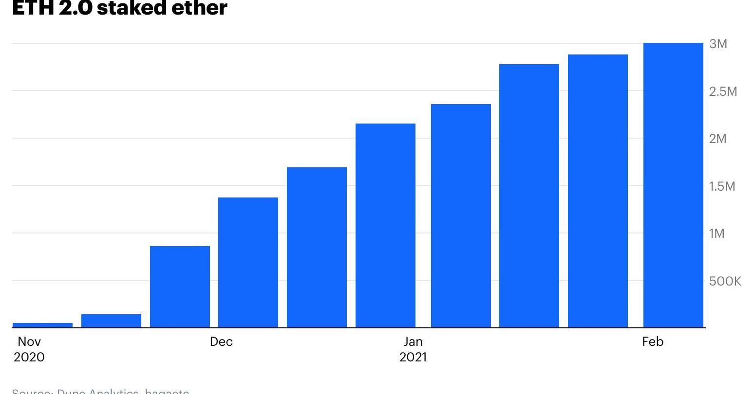 以太坊网络费用中位数但主要的解决方案即将出现。非营利组织以太坊基金会正式与Reddit合作,寻求该技术的解决方案和新的用例。在2020年8月,近24个开发团队向Reddit提交了以太坊扩展提案。Optimism和Rollups等项目可以潜在地帮助区块链每秒处理数十万个事务。与此同时,以太坊社区已经开始了计划已久的向更快、更便宜、理论上更安全的以太坊2.0区块链的过渡。理论上更安全的以太坊2.0区块链使用了一种被称为权益证明的共识机制,该机制应该会增加区块的容量。该项目于2020年12月开始推出,截至2021年2月,超过300万个ETH参与了ETH2.0合约。经过多年的升级,以太坊经济离实现其潜力、使各种金融交易更快、更便宜、更容易进行又近了一大步。