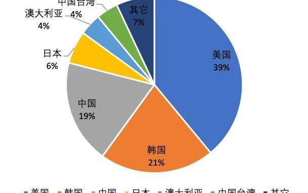 2020年,新冠疫情带来的全球不确定性和不信任度的提升,推动了区块链技术的研发投入。据中国专利保护协会《2020年区块链领域全球授权专利报告》显示,从不区分虚拟货币、公有链和联盟链的口径来看,截至2020年5月,区块链领域在全球范围内共有3924件授权专利。其中美国占39%,韩国占21%,中国占19%。图2:全球范围内区块链专利数量