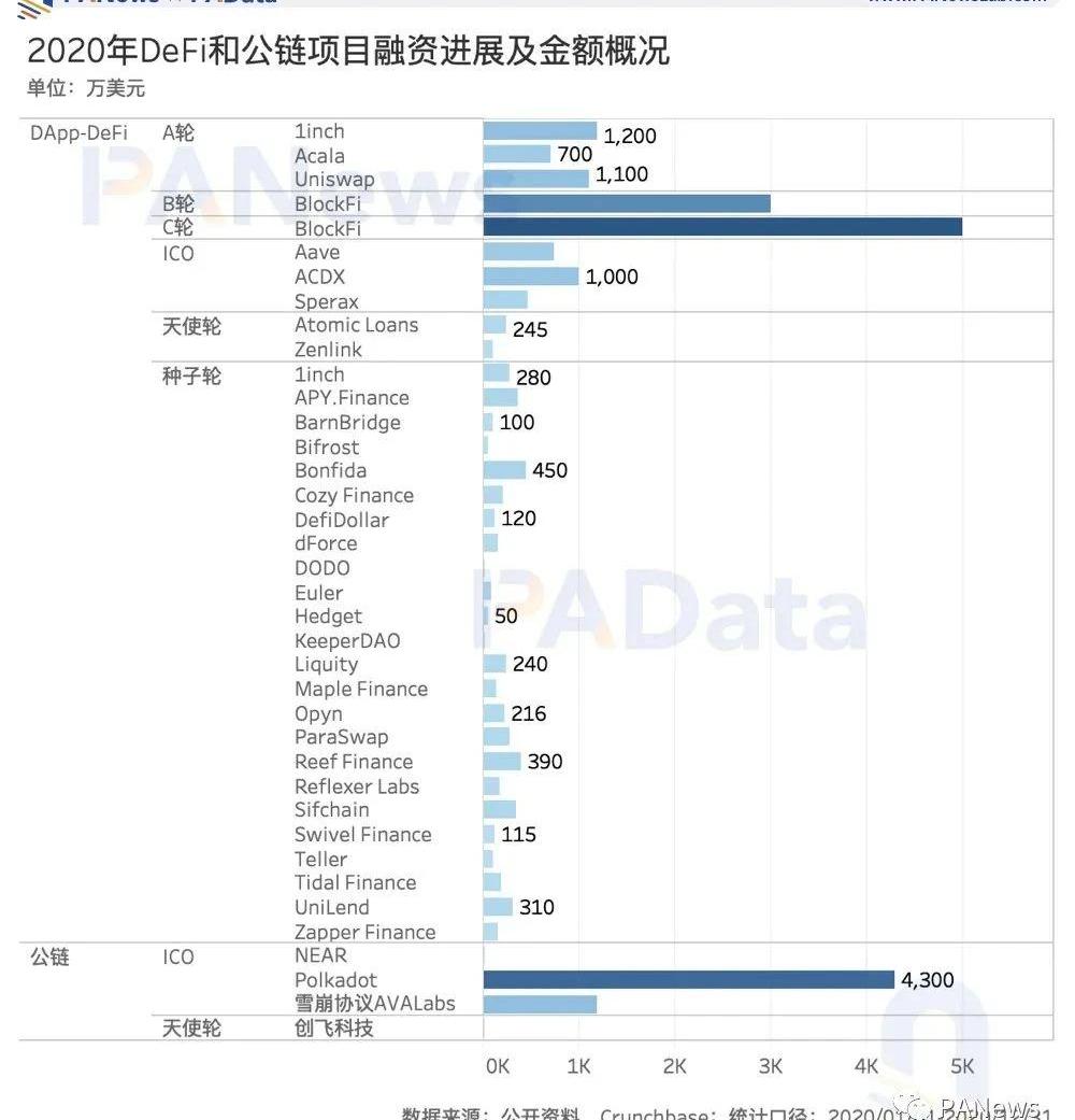 分析师|Carol冰棒编辑|Tong出品|PANews2020年,区块链行业欣欣向荣。BTC和ETH的币价分别上涨了302%和464%,带领数字货币市场全面走向牛市,加密货币市场总市值规模从约1918.63亿美元扩大至约7600.56亿美元,相当于翻了近4倍。受资产大幅溢价影响,这两大主流数字货币的矿业规模也扩大至约76亿美元,矿工获得超额利润的可能增大。在如此火热的行情之下,区块链领域也涌现出了不少新的行业热点,其中,DeFi在2020年吸引了最多的目光。根据ArcaneResearch的统计,DeFi的锁仓规模全年增长了约2100%,独立地址全年翻了10倍。行业的繁荣促进了投融资市场的发展。2020年,全球泛区块链领域的投融资保持了高速增长,全年披露的投融资总额达到35.66亿美元。PAData将通过公开数据整理,对2020年全球泛区块链领域的投融资基本面、重点赛道和活跃投资机构进行分析,尤其将关注DeFi、交易所和公链等行业主流业态的动向。全年407个项目累计融资35.66亿美元,四季度投融市场最活跃