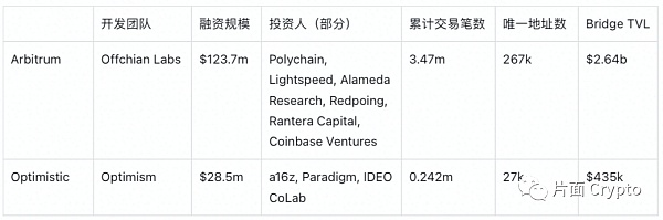 Arbitrum 和 optimistic 的部分信息对比: