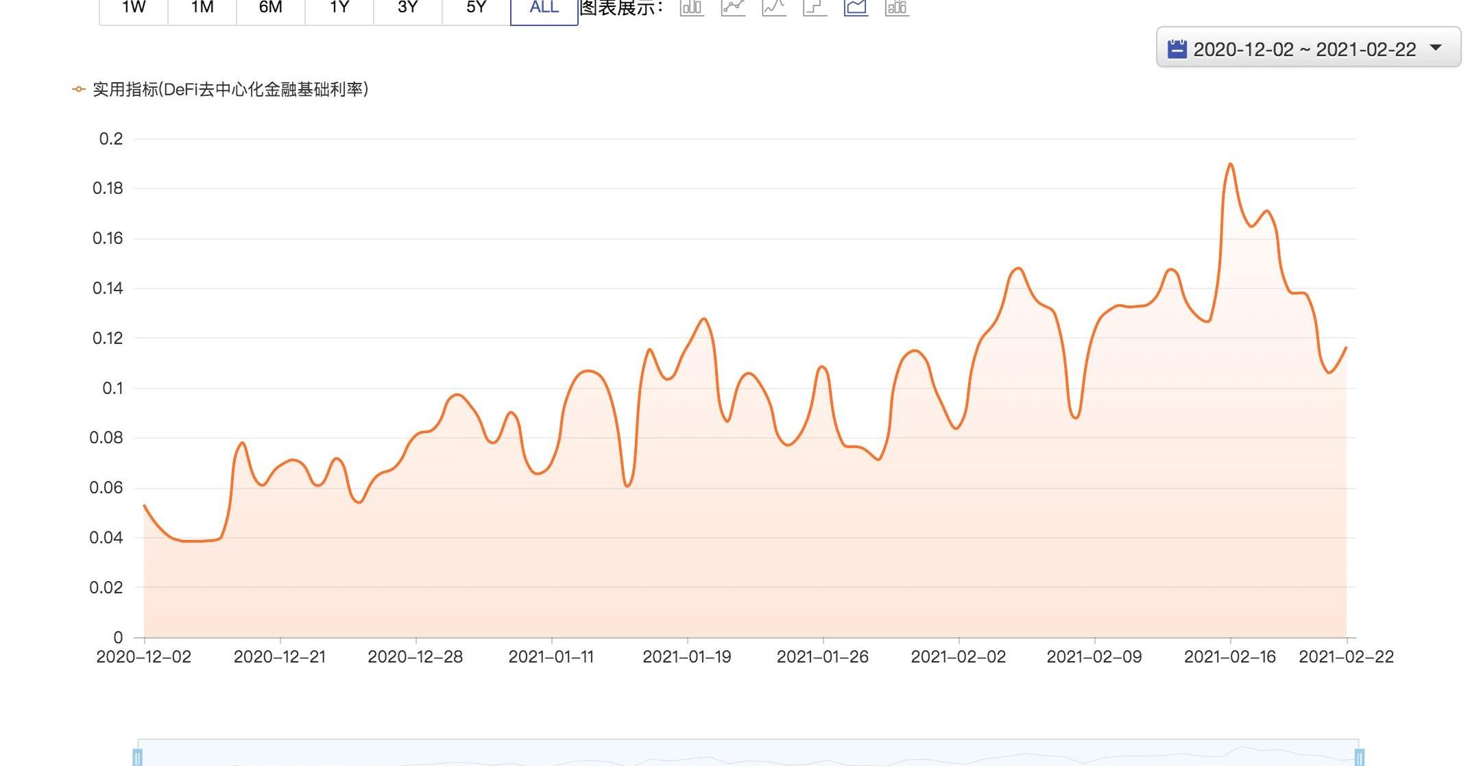 DeFi抵押融资基准利率是指抵押非稳定数字货币资产借出稳定数字货币资产的利率,用以反映去中心化金融市场的整体信用风险水平。