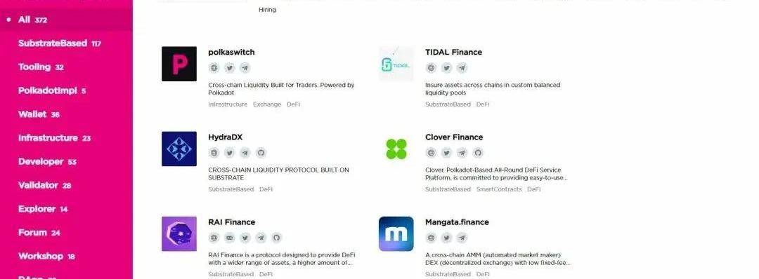 3月2日,PolkaBTC公测网正式上线,作为允许用户将比特币资产1:1映射铸造到Polkadot上的跨链BTC资产协议,对于Polkadot接下来DeFi生态中更多的DEX、稳定币、借代协议使用打下了坚实基础。而这也是Polkadot丰富DeFi生态与图景的一个缩影。据PolkaProject统计,截至3月2日其DeFi生态已经涵盖去中心化交易、借代、预言机和稳定币等各DeFi赛道,原生DeFi生态应用数量已达27个。尤其是基于Substrate架构的灵活性,创建针对独特DeFi场景的自定义区块链更是有先天优势,一批稳定币、DEX、预言机等赛道的基本工具在Polkadot上也完成构建,为Polkadot的后续DeFi生态发展打下了良好基础:Zenlink将通过集成ZenlinkDEXModule的方式,令平行链快速实现DEX功能且与其他平行链共享流动性;Mangata这样的项目构建以太坊桥解决矿工抢跑问题;Acala和Equilibrium,允许用户跨连接到Polkadot的任何区块链收发美元为Polkadot生态系统提供稳定币和货币市场协议支持;Phala这样的隐私链下环境提供保密性基础;KylinNetwork将链上和链外的数据进行聚合,打造由Polkadot支持的DeFi和Web3.0的数据基础结构;