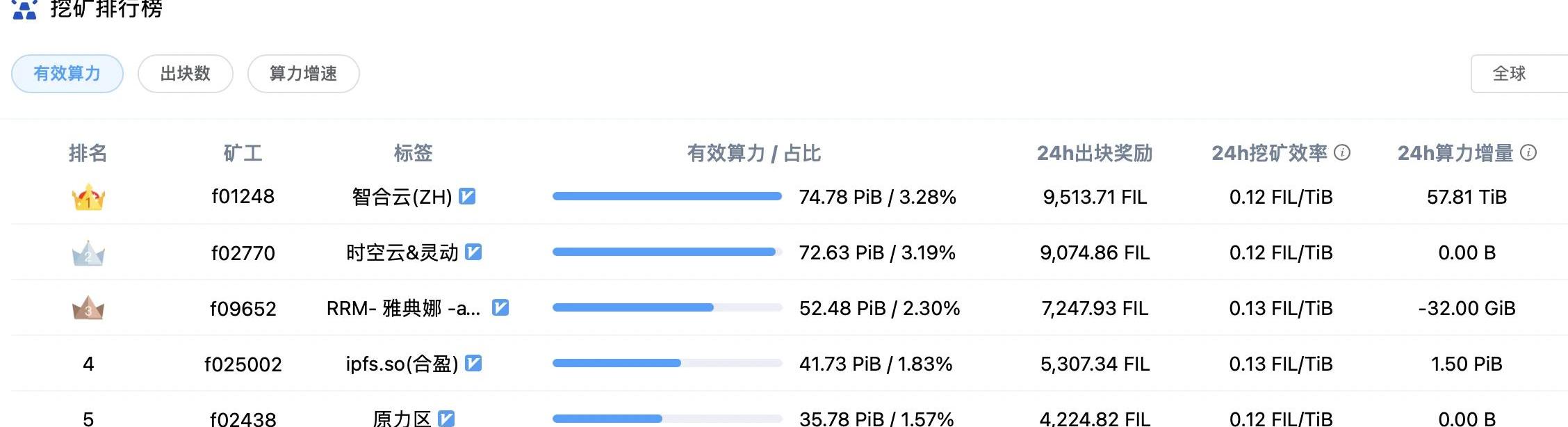 3、区块奖励和每T收益随着网络算力增长,Filecoin每区块奖励也在慢慢增长,本周达20.077FIL;从每T收益看,上周矿工的收益区间为0.1200-0.1277FIL/TiB,相较上周波幅缩小。