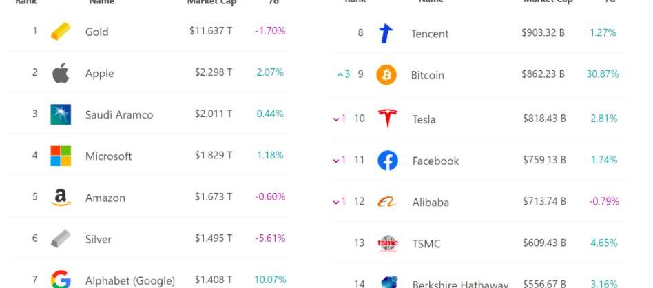 公司、加密货币和金属市值排名来源:8marketcap.com本周特斯拉的举措促使比特币的市值超过了特斯拉,比特币在所有可交易资产中排名第九。在过去,购买比特币可能被视为一种难以置信的大胆举动,但现在这已成为机构投资者的常识。据粗略估计,全球企业的资产规模约为10万亿美元,3%的资金配置到比特币中,约占比特币流动现金总价值的三分之一。考虑到超过60%的比特币供应已经有一年多没有变动,对于一项拥有3550亿美元自由流通供应的资产来说,3000亿美元的流入几乎是不可想象的。此外,每年新诞生的比特币总计341640个,仅为163亿美元。因此,我们可以有把握地得出这样的结论:将比特币稳定地配置到企业资产中,可能会使比特币目前的价格翻一番以上。