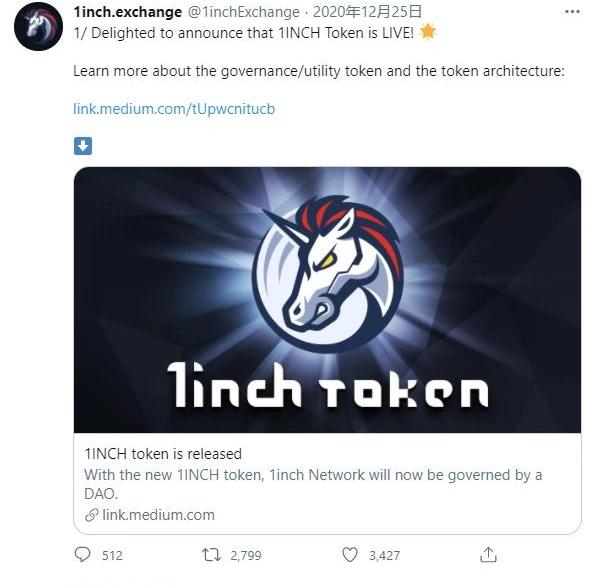 #真,错过了一个亿#@YFI+Sushi“YFI&Sushi”12月1日,DeFi聚合器项目YFI在推特上宣布和Uniswap分叉项目Sushiswap合并,这也是Yearn在继与PickleFinance、CreamFinance、CoverProtocol和Akropolis合并后的第五起合并@Coinbasepro“AAVE、BNT&SNXarenowavailable”12月15日,Coinbase官方推特宣布将上线Aave、Bancor以及Synthetix,这三个都是在2017年进行过ICO的项目,这代表了Coinbase和监管机构对这些ICO资产的态度发生了重大改变。@1inch.exchange“1INCHisLIVE!”12月25日,圣诞节当天,去中心化交易聚合平1inch正式发布治理和实用代币1inch。而让外界备受关注的是1INCH的巨额空投红包,最多的一位DeFi交易者在空投中获得了价值约2000万美元的代币,约等于1.5亿人民币。
