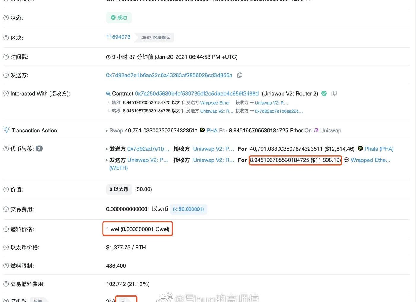 今日,YFII发起人高金发布微博表示:“某矿池亲自下场夹人了?两个1wei的夹1个125gwei的,不讲武德啊。单笔利润为0.12个eth,而且这个账号持续夹人中...”引起了围观者的激烈讨论。