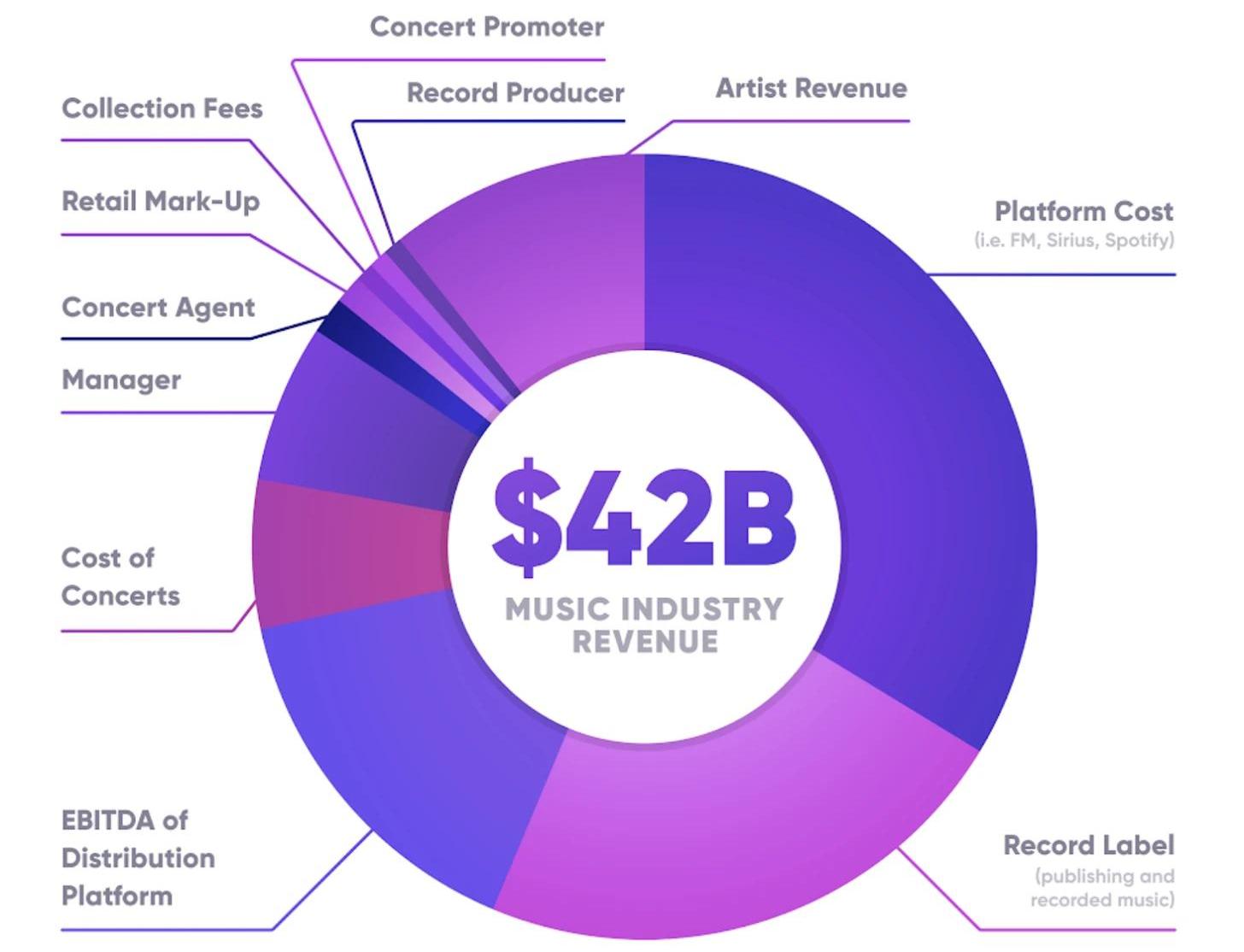 https://twitter.com/RAC/status/1318650515836653568?s=20大多数“成功”的艺术家都受到大唱片公司的眷顾,这些大唱片公司通常收取50-80%的版税,分销商和销售经理收取他们的提成之前,就只剩下不到一半的收入。这意味着艺人只能获得总销售额的12%的音乐收入。