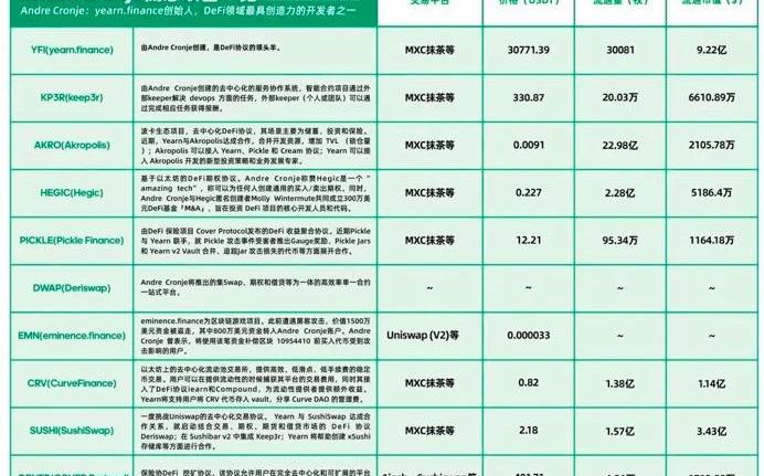 编者按:本文来自蜂巢财经News,作者:JXkin,Odaily星球日报经授权转载。12月6日,有人在微博发了一张加密资产的行情截图,上面除了BTC、ETH两大「硬通货」外,还有KP3R、CRV、HEGIC、COVER和SUSHI。博主写道,一眼望去,涨幅大的都是AC的币,「真的又一次带火了DeFi」。这位凭一己之力给多个DeFi资产带来爆发的「AC」,是AndreCronje的名字简称。5个月前,他最知名的身份是流动性挖矿聚合协议Yearn.Finance的创始人,这个协议的治理代币YFI一度从几美元上涨到4万美元,用2个月时间走完了比特币8年的涨幅。YFI火了,AndreCronje也火了。此后,他尽管因两次外界质疑而感到苦闷,甚至放言要退出DeFi领域,还从Twitter上消失了一段时间,但「喜欢把东西拼接在一起,看看会发生什么」的AndreCronje又回来了,还搞了大动作。12月1日,当Yearn.Finance与另一个知名交易协议Sushiswap合并的消息传出来时,市场震动了,两币连涨。爱「拼接」的AndreCronje没有停下来,人们发现,他像一个「乐高大师」一样,把诸多协议与YFI合并起来,拼接之手还伸向了波卡。连同他自己开发的智能合约任务网络Keep3r和交易类的Dwap协议,AndreCronje正在构建一个DeFi王国,场景包括借贷、交易、保险及衍生品。零零总总,至少有10个协议打上了「AC厂牌」。与之关联的币种近期也币价齐飞,民间有梗曰:造个DeFi卖给AC。但这样搭起的「DeFi乐高」安全吗?AndreCronje说了,会有Bug的,「但搭建使我愉快,我会犯错,如果你不理解,就别用。」AC出手DeFi聚合