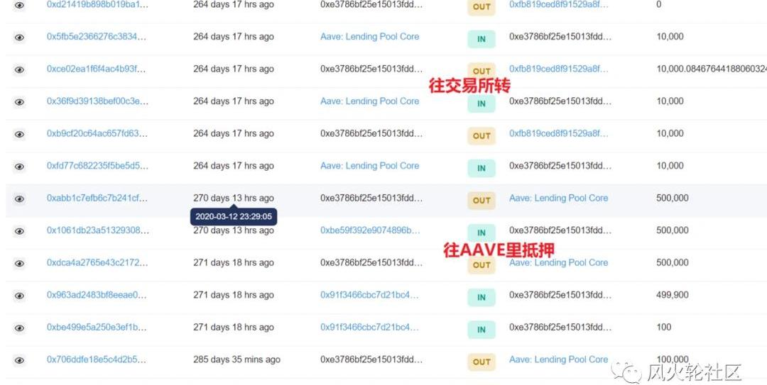 不知道这中间是发生了什么,不过转出的基本都是1万1万的,相比抵押数量来说还是很小的。他家另一个aave前身是lend,也是这样来的,在今年1月20日大量从币安转入再抵押到平台借贷: