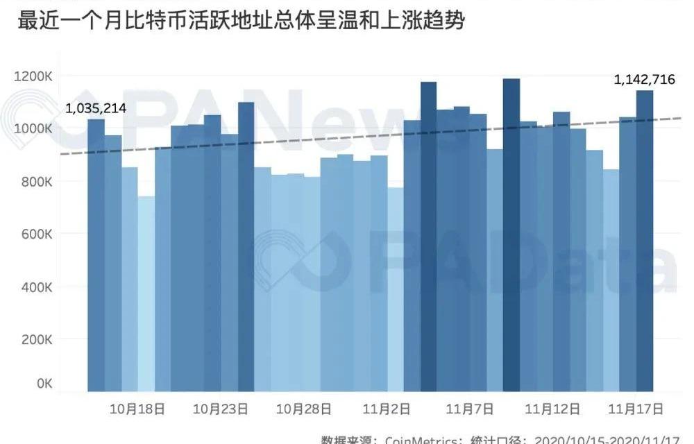 分析师|Carol编辑|Tong出品|PANews最近一个月,比特币币价连创新高,连续快速突破多个整数关口。根据CoinMetrics的最新数据,11月17日,比特币校正后的币价已经达到了17682美元,创下了自2017年12月18日以后的最高点,同时也创下了比特币历史第5高价。比特币大涨,市场情绪乐观,在这背后,比特币的基本面发生了怎样的变化?另一方面,交易所合规风波一波未平一波又起,在强监管之下,各交易所之间的资金动向又有哪些新的变化?PAData将通过近期链上数据和市场数据回顾此次比特币上涨的图景。币价连创新高,但算力略有下降
