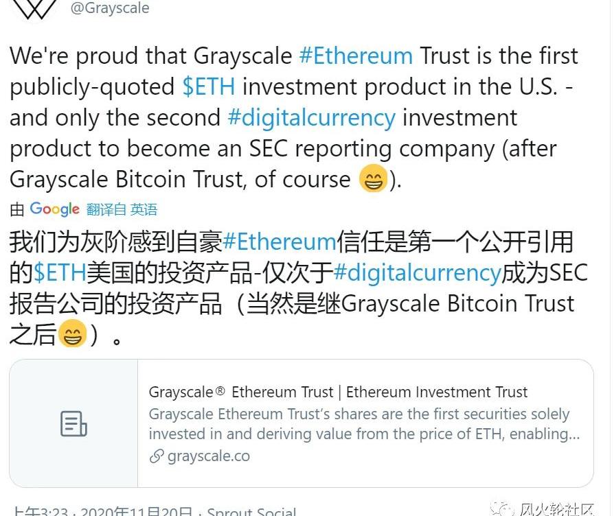 早在10月12日就已经通过批准成为SEC申报公司,可以说这则利好一个多月前已经反应在币价里面了,不过我看也还有很多朋友在问这则信息的意义所在,因为ETHE其实去年就上线了。从灰度官网答疑来看,这里主要有两点改变:1.所谓成为SEC报告公司,也就是这项基金是要受到《交易法》约束,需要比还没有经过SEC审批的基金,要向投资者披露更详尽的各种报告,如年度报告、季度报告和财务报告等。相当于是更规范一些,不管大佬还是韭菜也就不用担心说,持有GBTC或ETHE这背后是不是真绑定了辣么多币的持仓。2.一级市场的解锁期由原来的12个月可以缩短为6个月,也就是现在还没成为这种被SEC审核基金的,像ltcbch这些,一级私募进来还是要锁定一年,只有被这种通过批准,锁定期才可以减半。另外要注意一点,这个生效是需要90天,也就是对ETHE来说,要到明年的1月4日(敲黑板,要考),解锁期才正式变更为6个月,那就意味着我们现在还在解锁2019年11月的募资,而从明年1月开始,今年7月份以前的增量是可以全部解锁的。想更多了解,这里分享个链接,其实都是官网公开的信息哈:https://grayscale.co/今天这个消息呢,可能给人的感觉是狗庄“搞事”,不过还真是个乌龙哈,消息源自grayscale官方账号在凌晨发的一则推文: