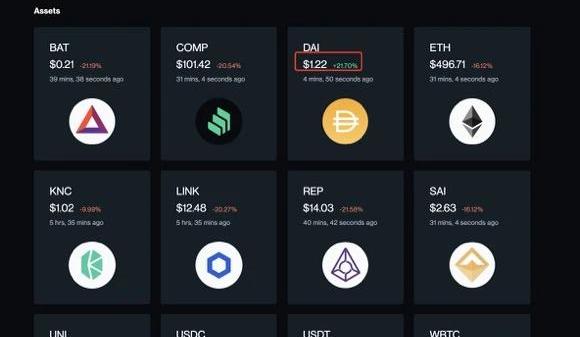 一份流传于社区内的图片显示,Compound的报价系统内美元稳定币DAI的价格曾达到了1.22美元的异常值。