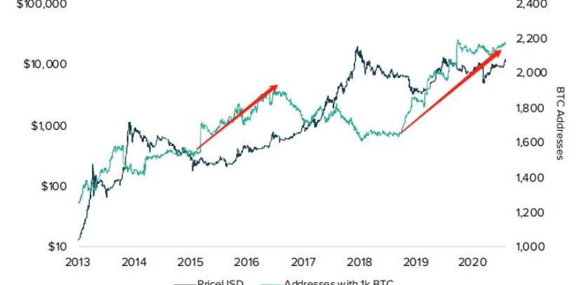 图3每日活跃地址数代表了网络的增长情况,活动的激增可能表明采用率的提高和新市场周期的开始。4.巨鲸指数