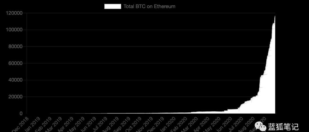 有意思的是,目前在以太坊上的BTC接近20亿美元,锁定量接近15万个,而且随着以太坊DeFi的发展,趋势还在继续。