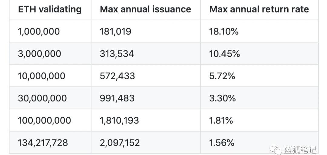 而我们还要考虑一个情况是,60%左右的ETH已经躺在钱包里一年没有动过了。这意味着在一段时间内,ETH的实际流通量会有实质性的下降。其次,以太坊的EIP-1559可以捕获价值。EIP-1559的核心在于将交易的基本费用进行销毁。目前以太坊的交易费用已经超过BTC成为加密领域最大的价值捕获之地,截止到蓝狐笔记写稿时,其年化收益费用收益能达到7.6亿美元,大约是比特币或Uniswap的一倍左右。关于EIP-1559提案可以参考蓝狐笔记之前的文章《以太坊EIP-1559与ETH的价值捕获》。