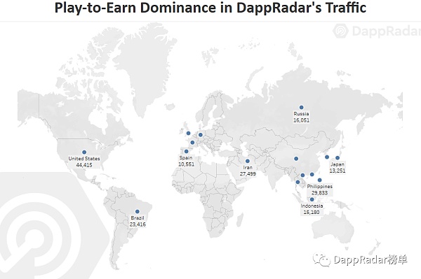 对于亚洲国家来说,play-to-earn并不算新事物。尽管如此,对区块链游戏的关注仍在继续增长。排名前十的国家中有6个来自亚洲,其中4个是东南亚新兴经济体。另外两个是印度和日本,这两个市场对游戏有着强烈的兴趣。