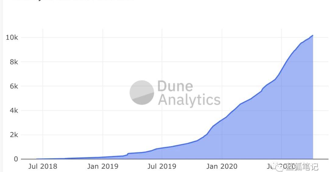 根据上图的数据,DeFi锁定资产总量已经超过100亿美元,其中支付、DEX、衍生品、借贷以及资产管理在过去3个月发展都非常迅速,尤其是DEX和借贷领域。2.DeFi用户接近50万