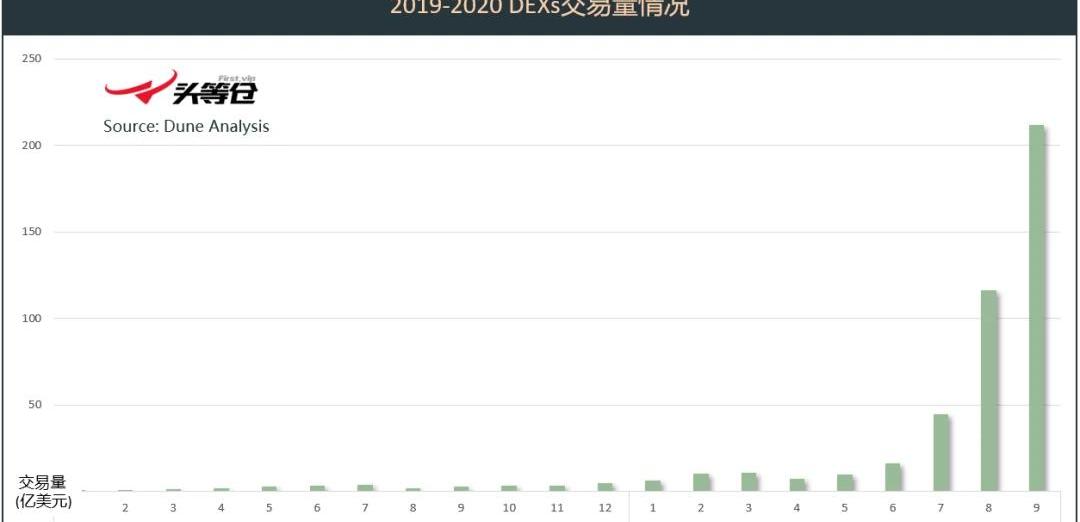 编者按:本文来自头等仓区块链研究院,Odaily星球日报经授权转载。九月份,随着Sushi开启直接抢夺流动性的序幕,DEXs的竞争也日趋白热化。如果一个项目不发币,那么流动性就可能被更高回报率的挖矿项目直接搬走。所以,最终DEX的龙头老大Uniswap,也“被迫”发行了自己的代币。UNI代币因其发币的机制,加上在过去几个月DeFi的铺垫,最终达到了一种全民参与的效果。当天以太坊的gas费用一度高达900,造成了持续的拥堵。我们将从宏观的交易数据看下整个九月份的DEX交易情况,再细说各个项目的进展。DEX交易数据概览