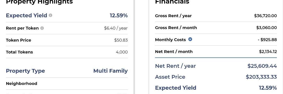 图中所示的房地产是在底特律地区的一所住房。房产价格20万美元,房屋面积3200平方英尺。这样的一个资产在美国房地产市场中是属于中低端市场。这个单体资产的经营者正在通过通证的方式进行资金募集。计划发行4000枚通证,每枚通证50.83美元。由此募集的资金用来购买这个资产。然后把这个资产在市场中出租,每月能获到3060美元的租金收入。在扣除各项成本后,每枚通证每年可获取6.4美元的收入。通证的持有者的年化收益率是12.59%。目前的这样的资产收益率在各类资产中是非常高的了。这样的一个资金募集过程是在链上进行。全世界的各地的投资者都能通过购买这些通证来获得这个房产的所有权并享有这个资产产生的收益。由于区块链技术的支持,交易成本小很多,便捷性也改进很多,世界上任何一个角落的投资者只要有50美元就可以开始投资美国的房地产。这样的业务之所以能够开展,完全是由区块链技术以及其支持的数字资产和数字货币带来的机会。由于区块链技术的特点,一个20万元的资产就可以分成4000份进行交易流通,而且其能够触及全球范围内的用户。资产的交易过程完全是在产品的提供方和产品的购买方之间直接实现,不需要第三方的清算,结算和支付公司来完成这个流程,资产的所有权登记也是在链上公布并且由具有牌照的金融服务机构来保证。这样的一个交易流程因此是在技术支持和法律保证的前提下进行的,因此这个业务就能够得到很好的保证来顺利完成。在这样的一个交易流程中,参与者需要在业务和技术方面关注一些根本的问题。在业务方面,用户需要了解这个资产发行方的业务资质,是否有此前的相关的从业经验以及以往此方面的记录如何。最关键的问题是,这个流程中的各项安排是否都是合乎法律要求的。其中同区块链技术相关的一个重要因素是实体资产的权益同通证代表权益的一一对应。在技术方面,第一是交易成本。这样的一个通证一年能产生6.4美元的收益。但如果交易成本过高,那么就很难实现收益。第二是钱包的安全性和便捷性。这个方面越类似于目前金融机构的账户管理方式,对用户来说就更放心和更便捷。第三,这个技术底层是否能够提供很好的隐私保护。隐私保护问题直接决定这个业务的交易量的上限如何。如果资产的发行方都能够非常好的回答以上这些问题,那么这样的美国房地产投资项目就是值得考虑了,特别是对于美国海外用户来说。对于普通的美国海外用户来说,此前一种投资美国房地产的方式是EB5。但是EB5的投资起点是50万美元,是50美元的一万倍。对于绝大多数的美国海外投资者来说,是没有这样的机会的。但现在区块链技术在美国房地产市场中的应用,却为绝大多数的美国海外投资者提供了这样的一个机会。需要特别指出的是,目前美国房地产通证化市场依然处在早期。早期的特点之一就是高风险。同常规的房地产业务不同,由于采用通证的方式在房地产市场中开展各种业务是一个新的方式,其中的参与者各种各样。对于对投资美国房地产市场感兴趣的美国海外普通用户来说,还是需要采取谨慎的态度。当此方面的一个投资项目看上去非常有投资价值的时候,通常这样的项目一定还有相关的风险。区块链技术的应用是对这个流程的改进,但并不能直接保证投资收益。
