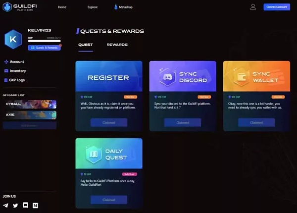 GuildFi 拥有与 YGG 相似的资金库和 DAO 管理内部组织,他们已经在早期阶段投资了一些游戏,将自己转变为游戏孵化器和游戏企业。