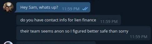 我迅速看了一下将ETH转出的代码,发现了两个匹配项。其中之一将ETH转移到了硬编码的代币地址,因此可以忽略。第二个是将ETH转移给发送方的焚毁功能。在跟踪了此功能的用法之后,我发现任何人可以免费为自己铸造代币,然后将其焚毁,换取该智能合约中的所有以太币都是不费吹灰之力的。我的心跳加速了。突然,问题变得严重了。我那份智能合约是LienFinance协议。不幸的是,他们的团队是匿名的!唯一的即时讯息支持平台是Telegram,而我不确定该Telegram频道的管理员是开发者还仅仅是某些早期支持者。我可万万不想将这一漏洞意外透漏给错误的人。在他们的网站又多浏览了一段时间,我发现他们曾与ConsenSysDiligence和CertiK合作,接受其代码审计。这看起来像是很不错的途径,ConsenSysDiligence和CertiK在审计期间肯定和开发者进行过互动。我迅速在Telegram上私聊了ConsenSysDiligence的安全工程师JohnMardlin。