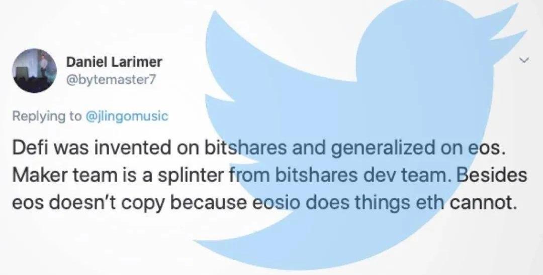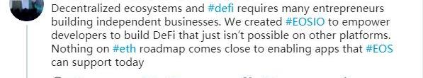 这两天EOS表现得不错,市值也重回前十,真是感天动地。这应该跟最近BM的频频发声有关系,他在Twitter上表示:“EOS是为DeFi设计的,DeFi市场才刚开始”;“我创立的比特股,比特股发明了DeFi,此概念在EOS上继续延伸。Maker开发团队来自比特股开发团队。EOS没有抄袭,毕竟EOSIO能做到以太坊做不到的事。”,除BM以外,BB最近看上去也在积极推广EOSIO生态中DeFi项目。其实B1早该做出一些行动,毕竟今年以来DeFi热闹非凡,有人吃肉,有人喝汤,EOS仿佛一直在旁观。