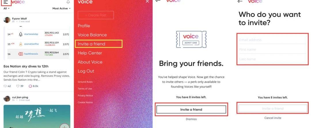 这里不得不吐槽一句,为啥这部分所有按键都叫Inviteafriend,操作一次下来感觉根本不像是只邀请了一个人!以上就是Voice盲区用户的注册使用攻略啦!祝大家食用愉快,如果不够愉快,要骂就骂BM吧!Peace&Love~