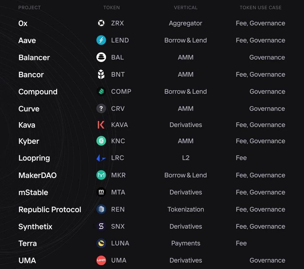 DeFi代币模式是加密资产生态系统的一大进步,原因如下。首先,DeFi代币通过协议内赚取链上费用捕捉内在价值。让投资者更容易根据代币价值调节,而非根据市场结构和市场热度为代币定价。其次,DeFi代币作为激励机制,让用户以强化协议网络效应的形式参与其中。DeFi代币主要用于激励流动性,让早期参与者获得高额收益。众多新上线项目的流动性激励模式对网络效应有重要影响。幸运的是,我们仍旧处在DeFi代币实验爆发临界点。费用型、治理型、和再抵押担保型模式是早期使用的重要三种代币模式。我们相信DeFi这个舞台会有更多创新。随着DeFi网络增长,会有新代币使用案例出现,让如今造就的网络效应持续下去。