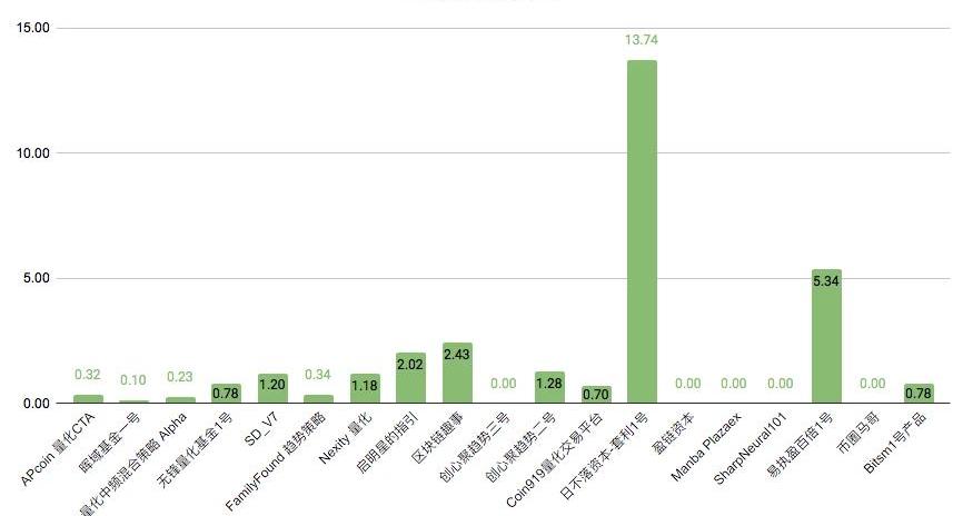 通过收益率分布图比较发现,BTC组整体收益差异化较大,两极分化明显,近一周收益率超10%占比超40%,在收益方面有较大的叠加。USDT组收益差距化也逐渐明显。各量化基金近一周正收益产品占比超50%,BTC组表现更加优秀,市场有明显的赚钱效应。在数字货币市场开始整体转暖的情况下,风险偏好型投资者可选择BTC本位基金投资,在BTC上涨过程中收益叠加会获得更好的收益。