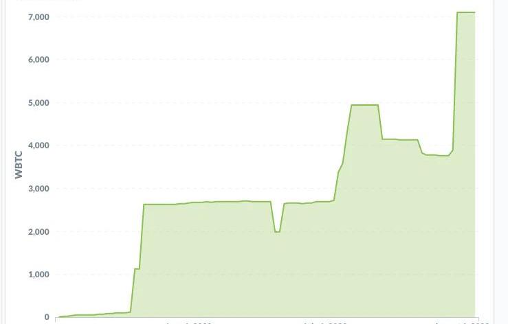 Curve流动性激励池中,wBTC、renBTC、sBTC分项增长情况|来源:DuneAnalytics如果说借贷项目与平台敞开怀抱只促成了wBTC的飞升,那么肇始于Compound,发扬光大于Curve、Synthetix、REN合作的「流动性挖矿」狂潮则推高了几乎整个锚定BTC部门。