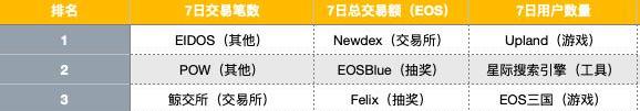 本周7日用户数、7日交易总额及7日交易笔数等数据上增长情况相对较好的DApp有: