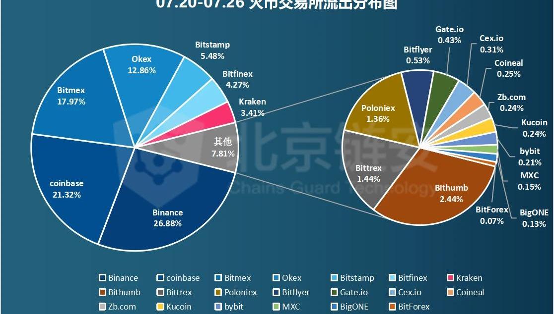 可以发现币安本周七天都处于净流出状态,最低点甚至触及-5500BTC,但在周日比特币价格突破后,净流入有所回升,接近平衡状态。火币交易所BTC流向数据流入:07.13-07.19:34371.1807.20-07.26:42892.15较之前一周上涨:24.79%详细数据图如下: