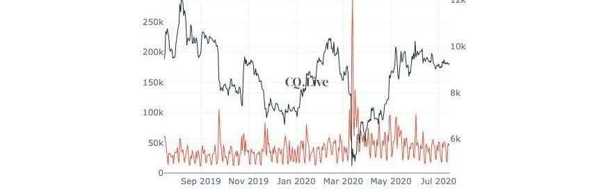 BTC/USD1日图表来源:CoinMarketCap截至发稿时,BTC/USD价格为9080美元,抛压似乎与CryptoQuant的预测相符。上一次比特币短暂下跌至9000美元是在6月28日,同时触及9480美元的高点。