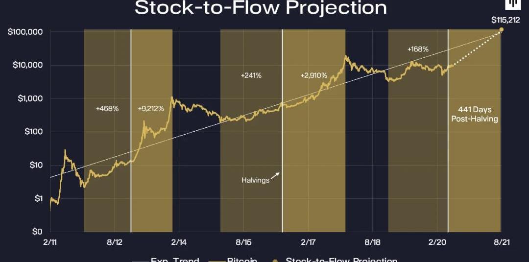 *Stock-to-Flow比率模型是指可用资产或储备资产的数量除以每年生产的数量在4月份的信中,我们公布了一个潜在的框架,用于分析比特币减半对价格的影响,该框架基于每次减半的Stock-to-Flow比率。根据分析,如果比特币遵循与之前类似的减半比率,到明年8月比特币可能会涨到11.5万美元。随着明年夏天的到来,我们将继续关注比特币的进展。今天的价格为9661美元,与两个月前预测的速度接近。今天的预估Stock-to-Flow是10948美元。