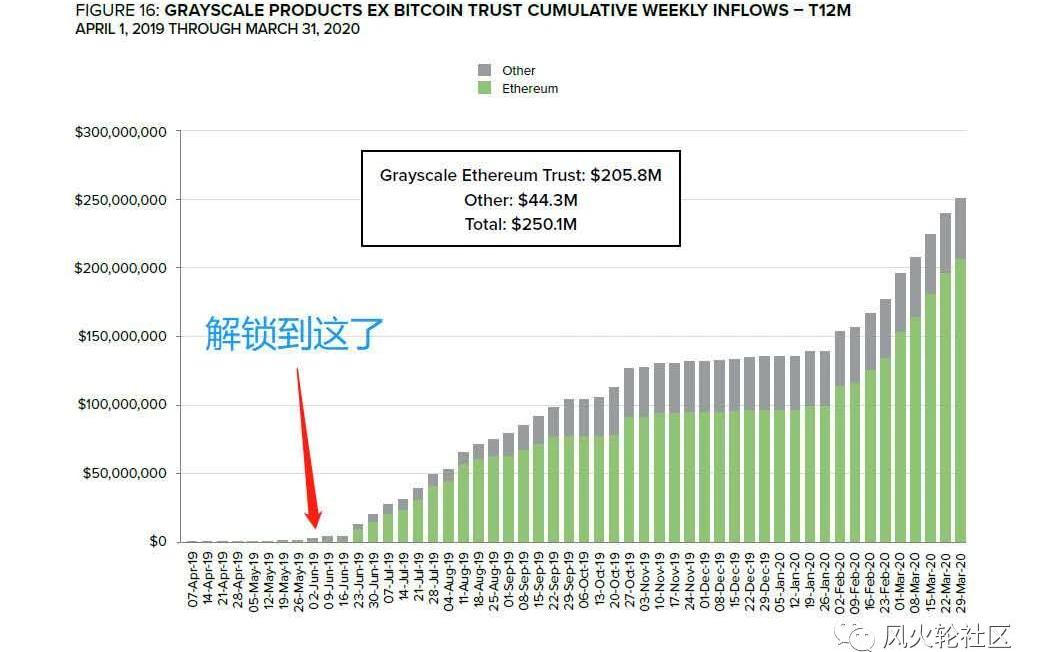 不知道到那时会不会有更多的媒体再说矿工挖的量喂不饱灰度,哈哈。另外对于ETHE,根据牛币圈家提供的之前灰度基金的分析报告,后面应该还有大量的解锁: