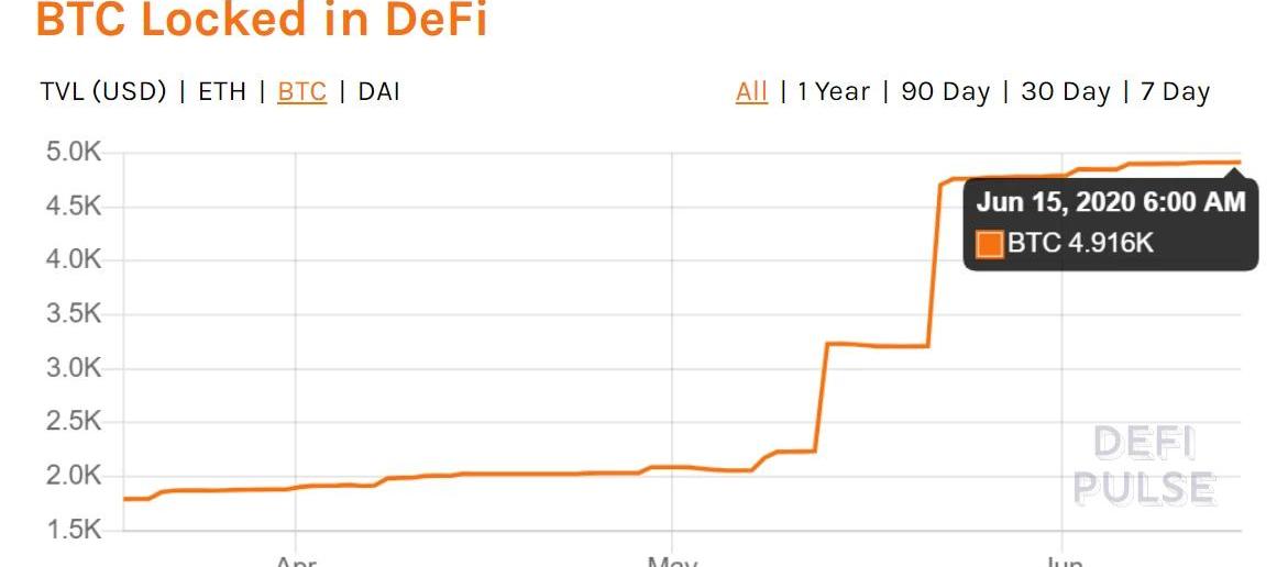 “从中本聪的十字路口出发,秉承去中心化的方向,将加密资产金融化,这是加密资产的演进方向。”区块链DApp开发者周主任认为,区块链天生就是为经济系统和金融系统服务的,DeFi正为此而来。由于DeFi再次撩拨业界情绪,将大家的期待值推向高潮。为此,最近有这样一个说法,即DeFi会成为打开牛市的钥匙。DeFiPulse数据显示,5月11日8时,被锁定在DeFi中的ETH数量为282.8万个,而到了6月15日6时,这一数字为267.7万个。这表明,被锁定的ETH在减少。与此同时,被锁定在DeFi中的BTC数量呈上升趋势。6月15日6时,锁定在DeFi中的BTC数量为4916个,相较于5月初增加了一倍。